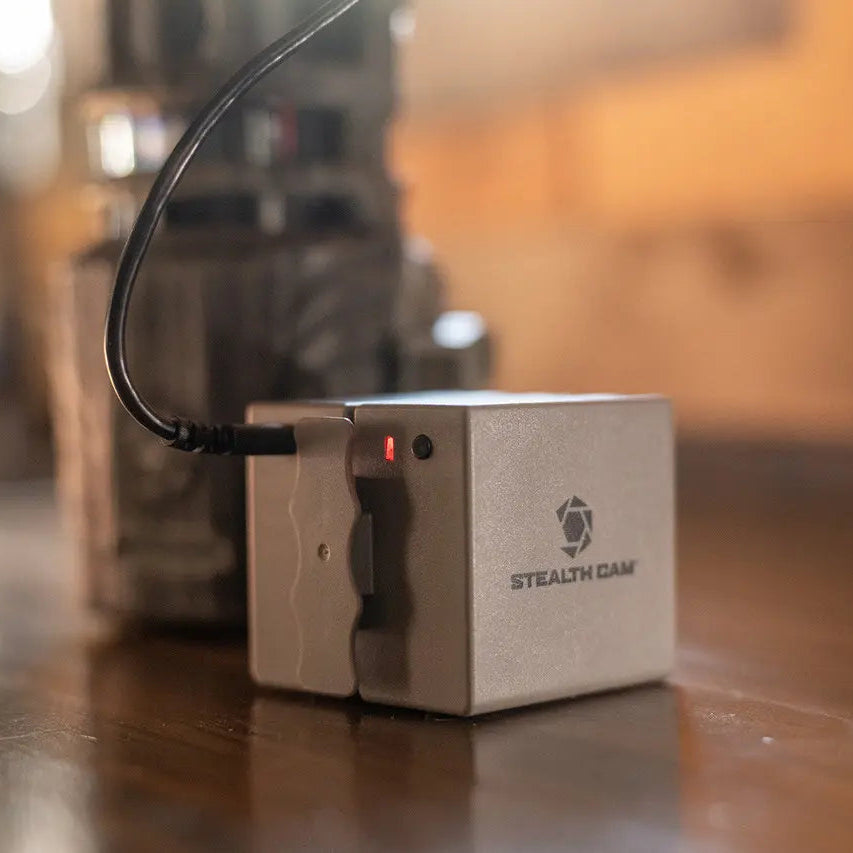 Stealth Cam delivers power, coverage, convenience and reliability to the max with the Revolver Lithium Rechargeable Battery Cartridge, part of the FieldMAX lineup of alternative power solutions. This 12-volt/5,400 mAh lithium-ion power pack keeps Revolver series cellular trail cameras operating for extended stretches afield, even in extreme conditions. Rechargeable via the included USB-C cable, it virtually eliminates the need for disposable AA batteries, saving you time and money. Perfect for use in heavily wooded areas where sunlight is in short supply.