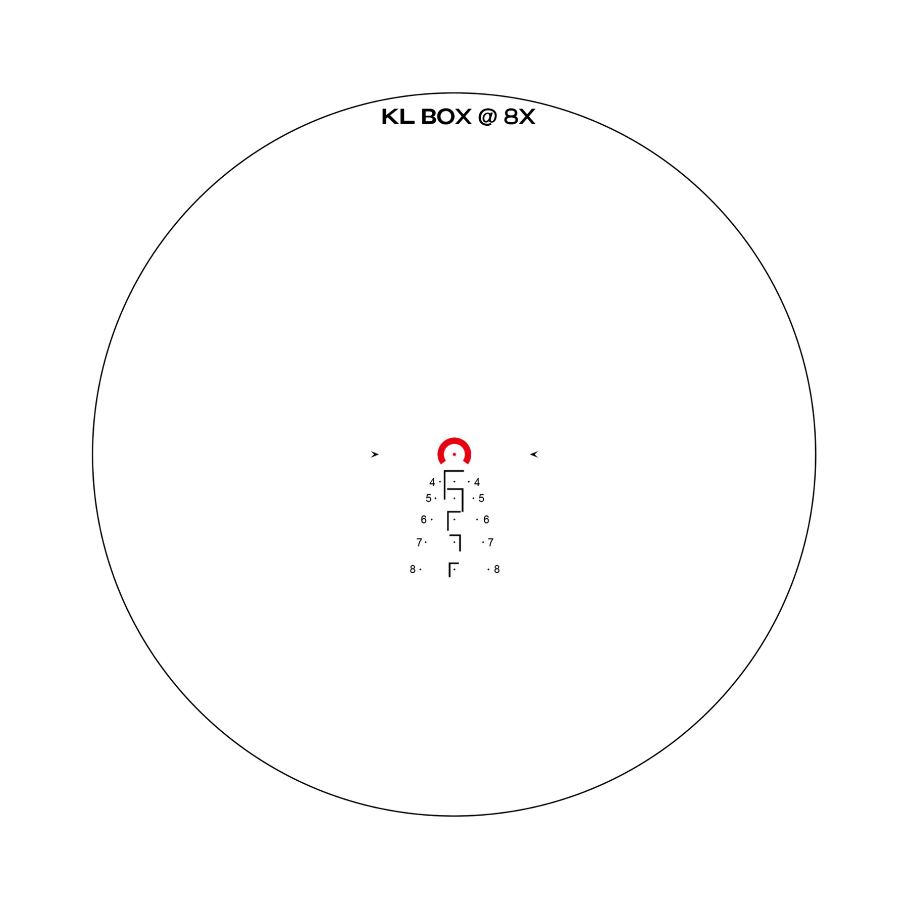 First Focal Plane KLBOX BDC reticle with daylight-bright illumination