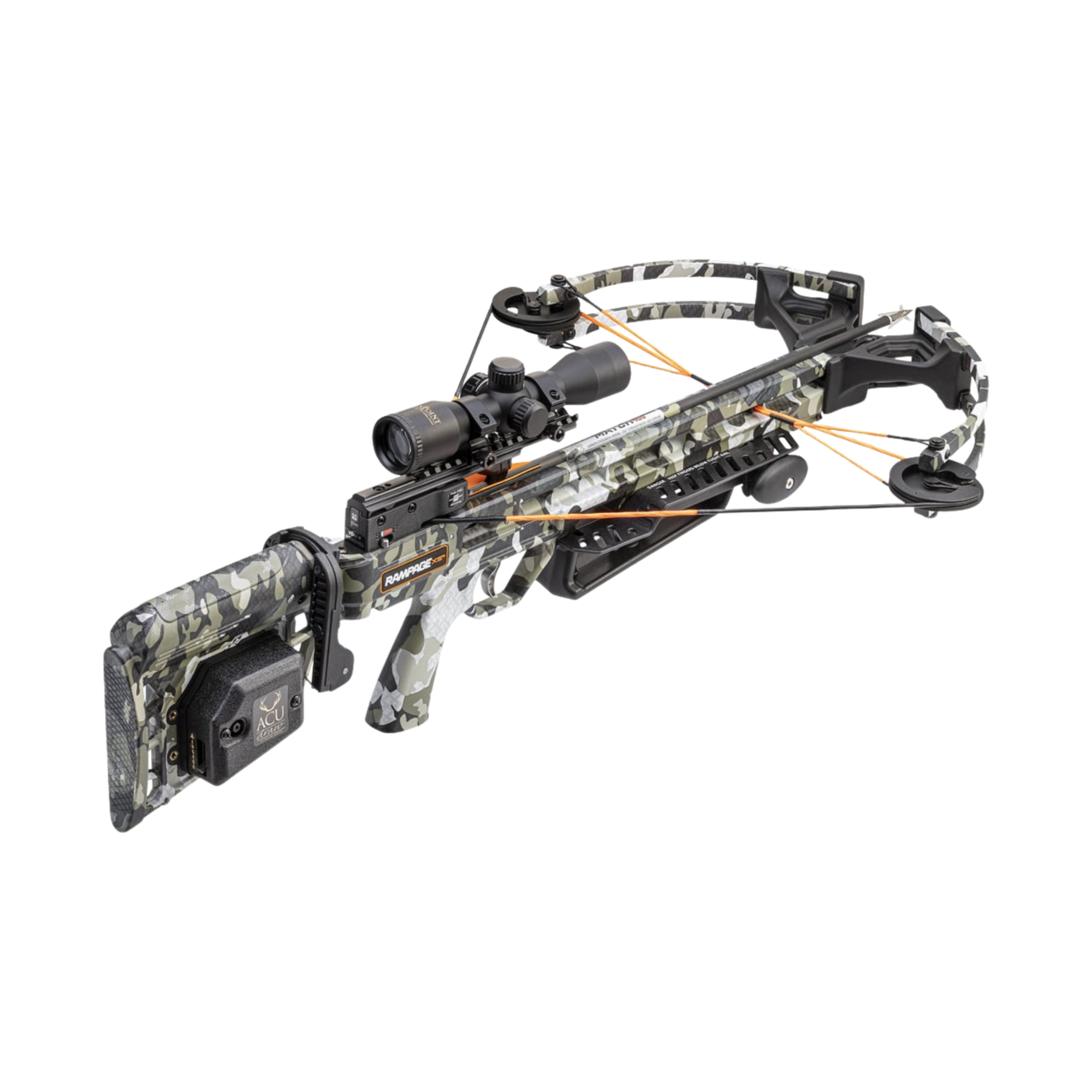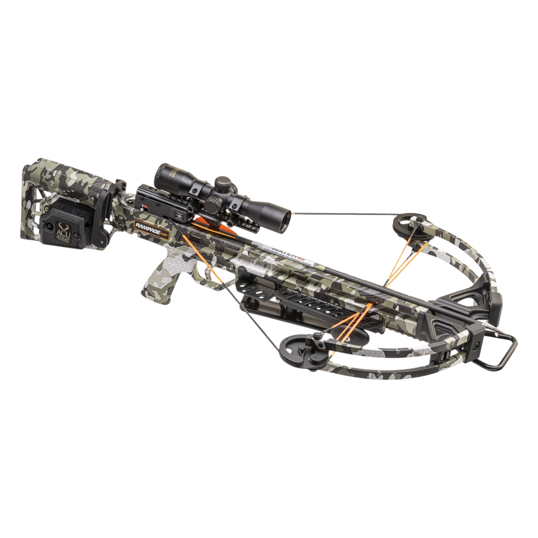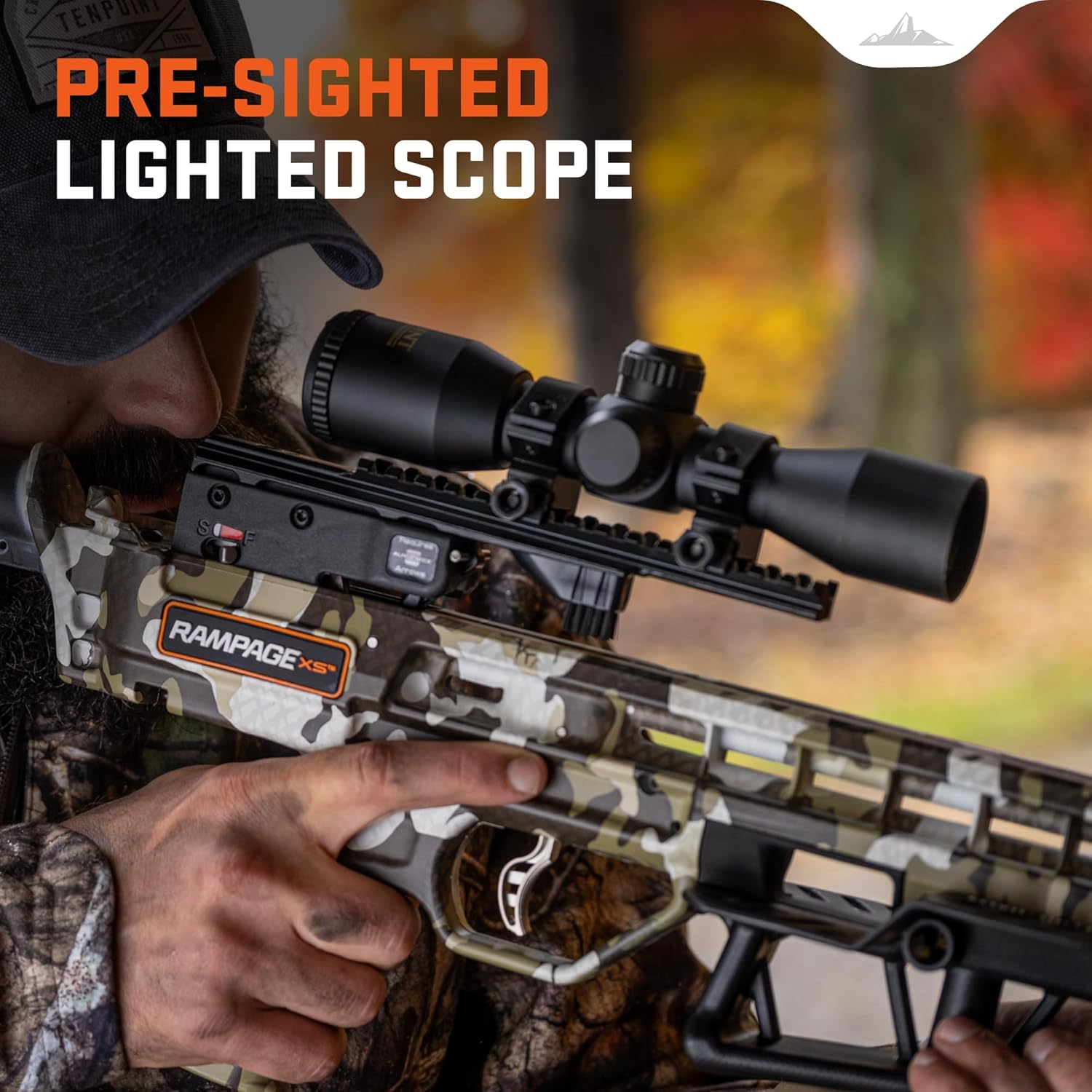Equipped with a lighted scope and 3 and-a-half-pound trigger, the Rampage XS is our lightest crossbow ever at 5.8-pounds and is a full-blooded American crossbow ready to hunt hard and get the job done.