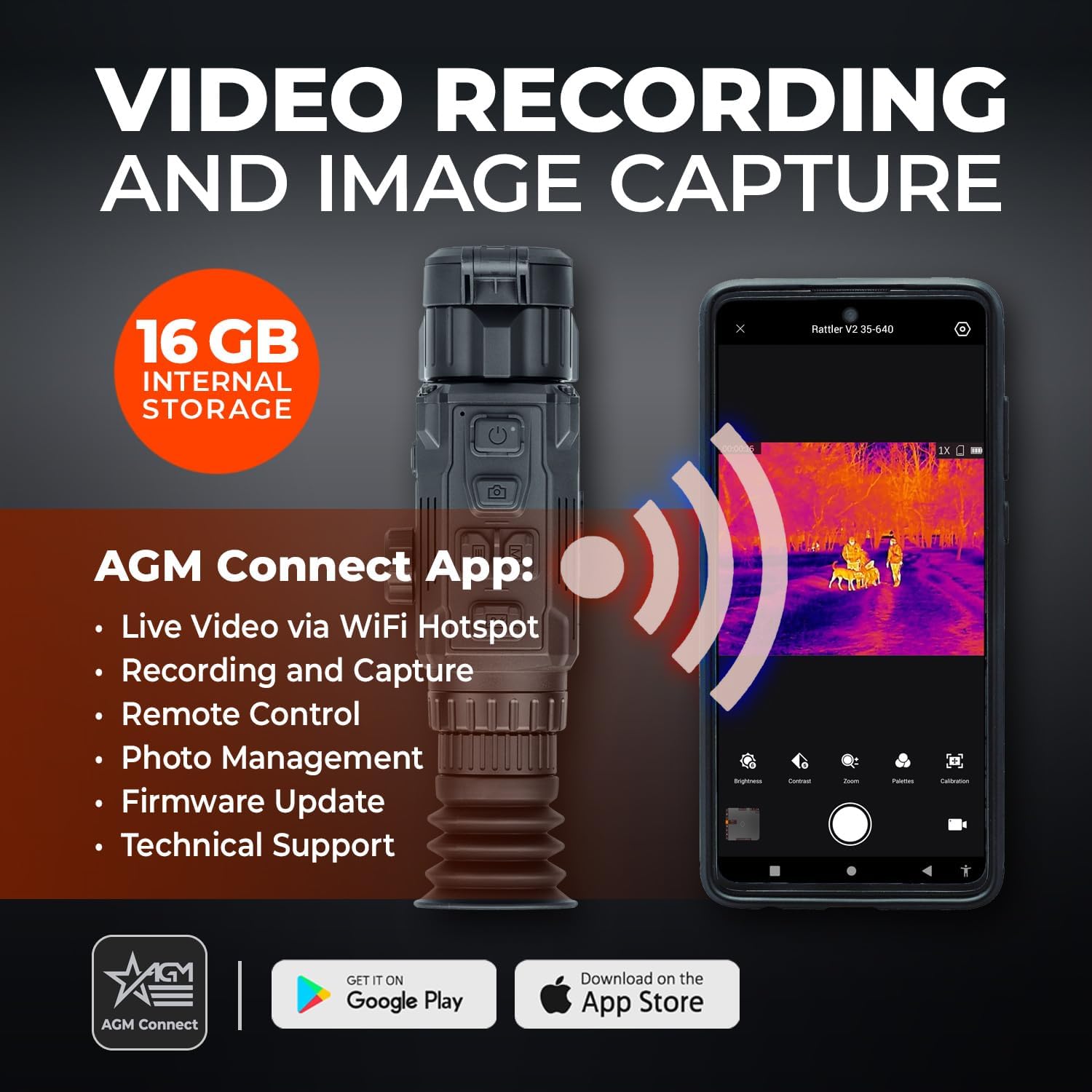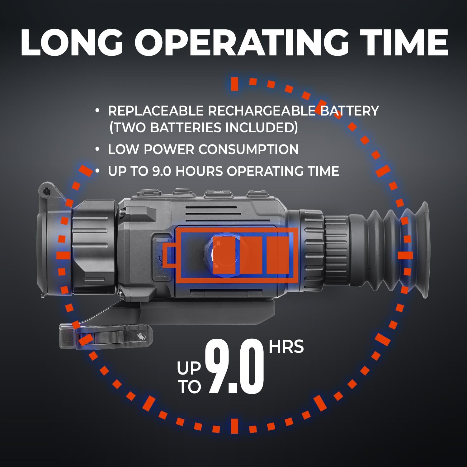 The RattlerV2 35-640 includes features familiar to AGM Rattler users, with some additional game-changing improvements such as an upgraded battery compartment that accommodates a rechargeable battery extending run time to 9 hours and a new 12-micron thermal sensor that has the highest sensitivity rating (sub-20 mk) on the market.